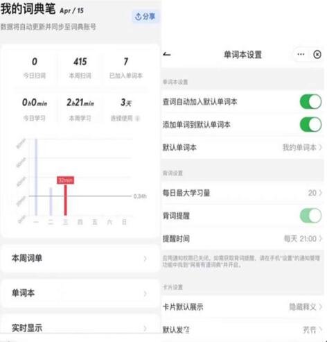 3聯(lián)動(dòng)app:在綁定了網(wǎng)易有道詞典app后,每次使用有道詞典筆3完成查詞,手機(jī)上就會(huì)顯示這個(gè)單詞的圖示、完整釋義和雙語例句等信息。小程序還提供了牛津、韋氏、柯林斯等更多的詞庫,理解生僻單詞不再是難事兒。
