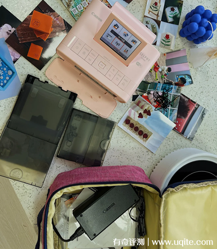 這款佳能相片打印機(jī)有黑、白、粉三種顏色可以選擇,我入手的是粉色的這款。打印機(jī)到手后里面除了打印機(jī)以外,還有電源線、6寸紙盒、3寸紙盒以及使用說(shuō)明書(shū),就還挺不錯(cuò)的。