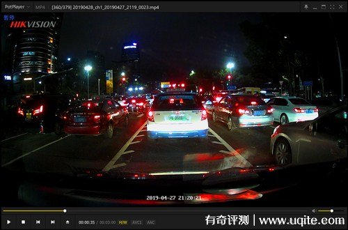在白天能見(jiàn)度正常的情況下,??低曅熊囉涗泝x最遠(yuǎn)能拍到兩到三個(gè)車身距離遠(yuǎn)處的清晰車牌,再遠(yuǎn)一點(diǎn)就看不清了,但是也足夠平常的使用了。
