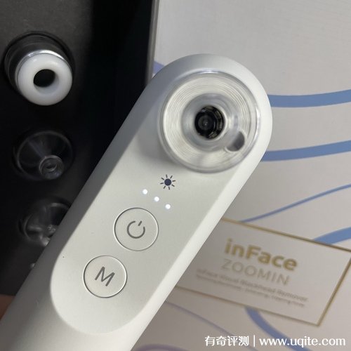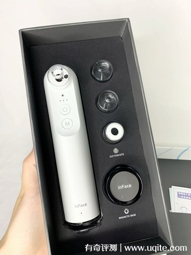 inFace黑頭儀到手時(shí)候還多送了四個(gè)不一樣的吸頭,還是蠻實(shí)用的,它的做工也很好,拿在手里還蠻有質(zhì)感的,沒什么重量感,整體形狀不大,平時(shí)出門攜帶也很方便。