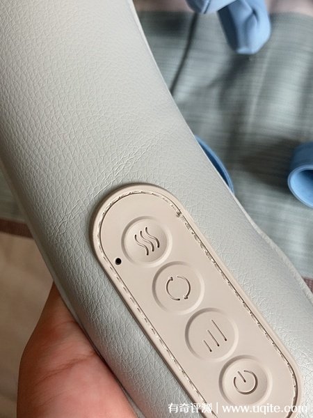 網(wǎng)易嚴(yán)選肩頸按摩儀做工挺好的,沒(méi)有多余線頭之類的,材質(zhì)感覺(jué)也是質(zhì)量很好的類型,外層皮質(zhì),內(nèi)層按摩頭外面的布料軟軟的,觸感很好。用的時(shí)候需要拉住兩根繩子,能更好貼合頸部,其實(shí)單手就可以拉了,不影響看手機(jī)。側(cè)面是按鍵,可以調(diào)節(jié)模式(順時(shí)針、逆時(shí)針?lè)较颍┖土Χ取?/p>
