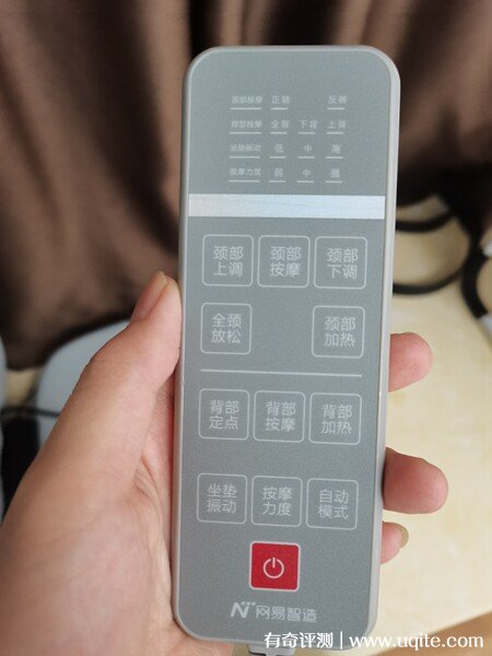 網(wǎng)易嚴(yán)選按摩器做工沒問題,布料摸著感覺還不錯,頸椎、背部都有按摩頭。遙控操作的,按鍵超級清楚,我是第一次見到比電視遙控器標(biāo)得還清楚的智能產(chǎn)品遙控的。按摩器坐著躺著用都可以,我平時是放飄窗上坐著用,剛好背部可以靠墻。