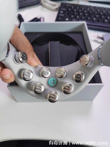 這款SKG頸椎按摩器是一個(gè)仿人手9D按摩頭設(shè)計(jì),而且中間還設(shè)有一個(gè)630nm的紅光聚能熱灸點(diǎn),可以起到促進(jìn)頸部穴位多點(diǎn)微循環(huán)的作用,能夠有效緩解和擊潰酸痛感。