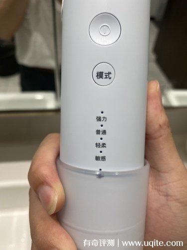 這款松下沖牙器是升縮艙設(shè)計(jì),顏值很高,整個(gè)機(jī)身拿在手上就還挺有質(zhì)感的。使用時(shí),這款松下沖牙器一共有四種模式,分別為強(qiáng)力、普通、輕柔和敏感,剛開始使用的朋友,建議從低檔位開始,給牙齦一個(gè)適應(yīng)的空間。