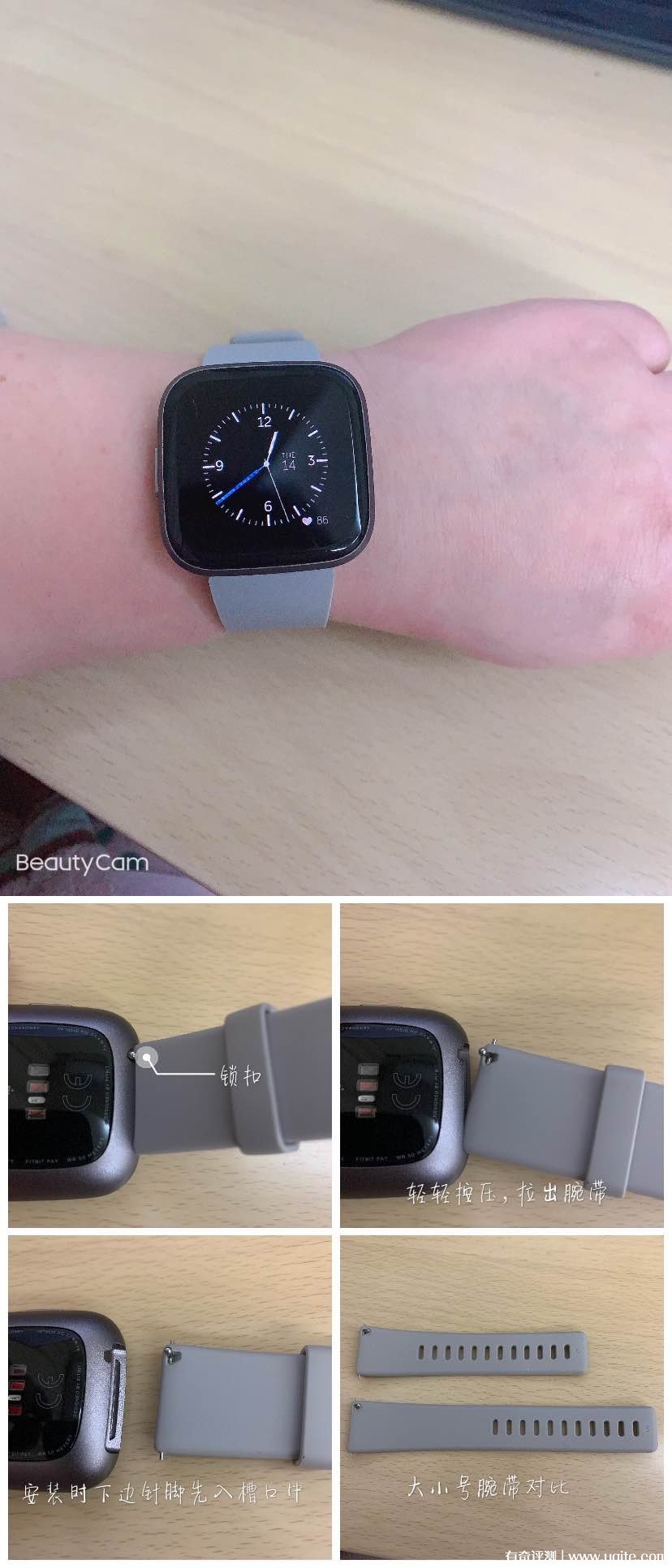 配件齊全:手表、充電線、大碼腕帶。V2外觀考究,簡約百搭的設計風格加上質(zhì)感的配色可以起到時尚的裝飾作用,勝任全天佩戴。V2的腕帶是硅膠材質(zhì),觸感柔軟,輕便靈活耐用。腕帶的拆卸極為方便簡單,fitbit公司貼心的提供多款顏色和材質(zhì),單獨出售,材質(zhì)不僅有硅膠,還有皮革、織物、金屬,應有盡有。