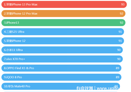 手機(jī)排行榜2021前十名