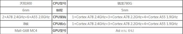 驍龍780G:驍龍780G采用的是旗艦機(jī)型的"1+3+4”架構(gòu),為用戶提供很好的A78性能體驗(yàn)