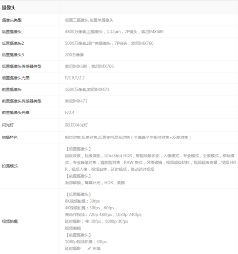 3、影像:前置1600萬像素(索尼IMX471);后置三攝14800萬像素,主攝等效23mm無ois(索尼IMX689)+②5000萬像素超廣角;等效14mm自由曲面鏡頭(索尼IMX766)+③200萬像素黑白鏡頭。