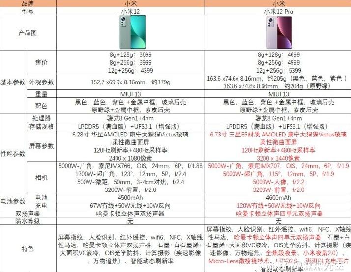 兩個手機所有的區(qū)別就入圖中所描述的一樣了,簡單來說,如果追求性能、攝影、續(xù)航、屏幕等各方面都非常出眾,并且喜歡大屏幕,不介意手機較重的話,那么就適合選擇小米12Pro。如果追求極致性能、續(xù)航、充電方式和小巧輕薄的手感,不太需要極致拍照的話,那么買小米12就足夠了。此外,小米12比小米12pro便宜1000左右的價格,也適合預(yù)算不太夠的朋友購買。