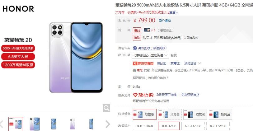 榮耀暢玩20手機(jī)多少錢:最低799元