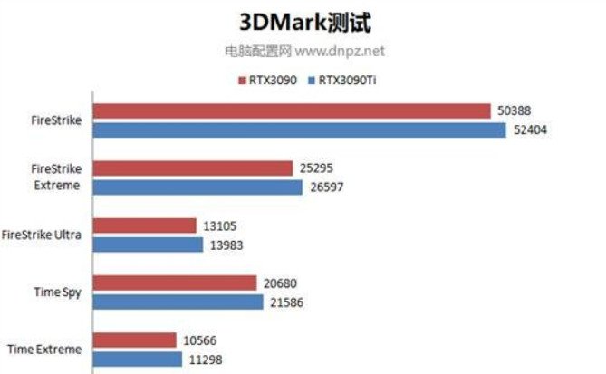 對比起3090的GA102-300來說,3090tiGA102-350的大核心雖然想要克服功耗和發(fā)熱的問題比較難,畢竟隨著頻率的提升,功耗和發(fā)熱也是成比例上升的。而這次的3090ti確實(shí)很讓人驚訝,相比起3090的1695mhz的boots頻率,3090ti足足達(dá)到了1860mhz,直接實(shí)打?qū)嵉奶嵘?0%。我們通過3DMARK也能看出,這次的3090ti和3090相比,各項(xiàng)成績都有著4%到6%的提升,提升可以說是相當(dāng)大且相當(dāng)明顯的。