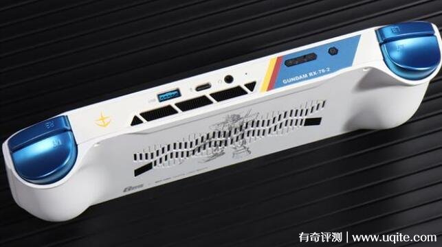 onexplayermini的外觀因為是和高達聯名,所以外觀是高達主題的,隨處可見的高達主題也讓onexplayermini的顏值更上一層樓,機身整體以白色為主,外觀結合了高達元祖RX-78-2元素,十字鍵也采用了高達藍和高達紅的配色,即使放在那里,也能夠讓人感覺到科技感十足,宛如工藝品一般。