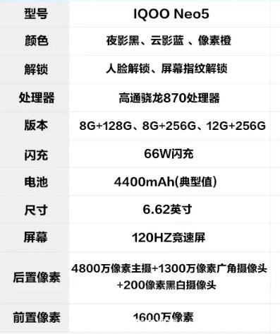 iqooneo5是一款許多人都非常感興趣的手機,不少人都想了解iqooneo5的詳細配置參數(shù),今天就直接給大家?guī)砹薸qooneo5詳細配置參數(shù)表,幫助大家了解這款手機。