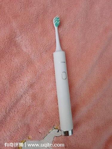 拿到手上挺輕的,整體看上去也比較有質(zhì)感的,做工比較精細,不會像很多便宜的電動牙刷,一看就很粗糙。它的牙刷毛挺柔軟,但又不是那種特別軟的,硬度比較適中,應(yīng)該對大部分人比較友好。我個人是比較容易刷牙刷出血的,這個就不會。因為到手的時候還送了牙膏,所以我是配合送的家的牙膏用的。