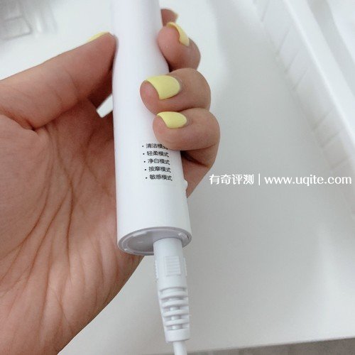 這款電動牙刷的顏色有白、黑、粉、紫、藍(lán)五種之多,不會顯得很單一,大家可以根據(jù)自己的喜愛選擇,而且牙刷的設(shè)計很有ins風(fēng),開關(guān)鍵是一種水波紋的設(shè)計,給人很時尚,一點也不廉價的感覺,有五檔可供調(diào)節(jié)。