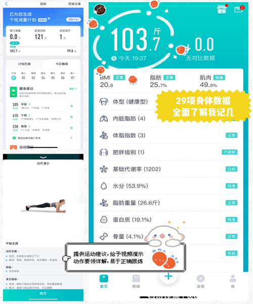 APP就會(huì)為你免費(fèi)量身私人定制運(yùn)動(dòng)和飲食,讓你科學(xué)減肥。雖然大多數(shù)的體脂稱都有這個(gè)功能,但是這款感覺更全面,而且連續(xù)稱重7天,會(huì)形成明確的體重、脂肪、肌肉周數(shù)據(jù),可以清晰了解身體變化,并且它還可以連接我家天貓精靈,可以語音播報(bào)測(cè)量結(jié)果,操作起來有簡(jiǎn)單了很多。