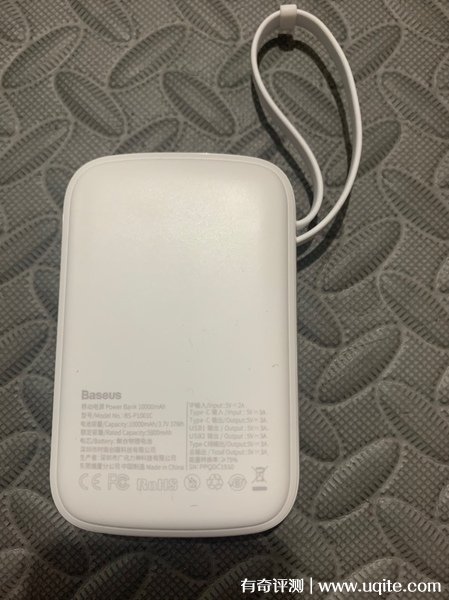 倍思這款充電寶做工還挺好的(耐磕),沒(méi)有瑕疵,大小比手機(jī)還要稍微小一點(diǎn),不過(guò)還是挺有重量感的。我最喜歡它的一個(gè)設(shè)計(jì)就是那根數(shù)據(jù)線,有了它再也不怕忘記帶線,而且它往上面拉出來(lái)又可以當(dāng)掛繩,拿著很方便(線是很結(jié)實(shí)而且有一定彈性的材質(zhì))。