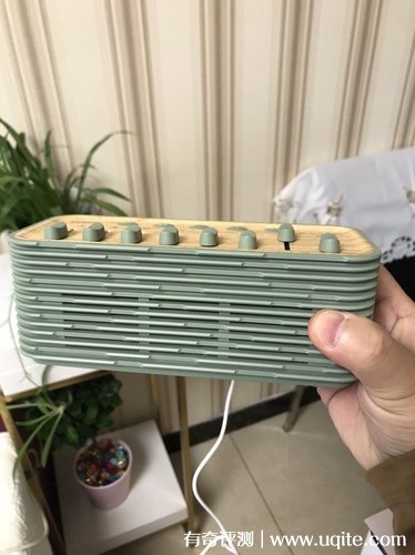 幾光音箱到手之后顏值很高,實物和圖片也沒有什么區(qū)別,牛油果綠的配色看著就挺高級的,頂部是木質的做工,還挺有質感的,它的重量比我想象中的要輕一點,平時出門攜帶的話也不會覺得累贅,而且它的體積形狀也不算大,不會占什么空間。