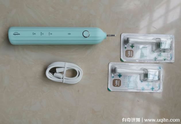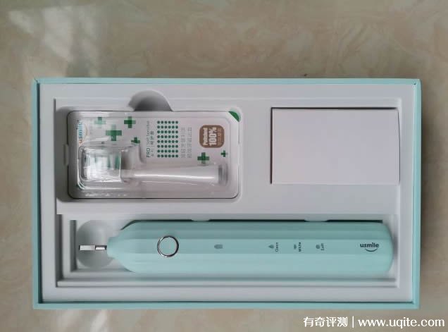 usmile電動(dòng)牙刷包裝盒子里面有電動(dòng)牙刷主體,送了兩個(gè)牙刷頭一個(gè)是呵護(hù)型,一個(gè)是專業(yè)型。