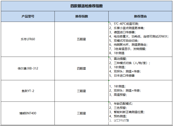 小編特意挑選了市面上比較熱銷的四款額溫槍:樂冬LFR60、倍爾康JXB-312、魚躍YT-2、博朗BNT400,進(jìn)行一期對(duì)比評(píng)測(cè),幫助大家更好的了解各個(gè)品牌產(chǎn)品。