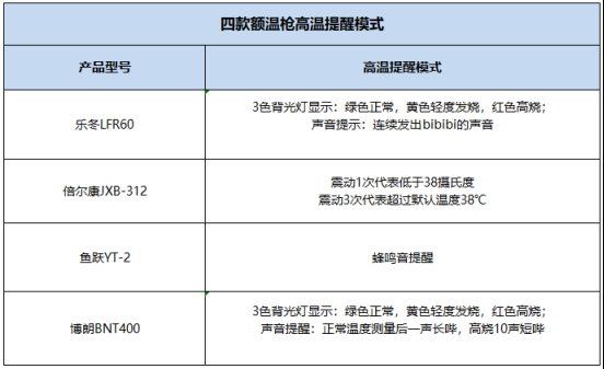 體溫過高,這4款產(chǎn)品都會(huì)有發(fā)燒提醒,除倍爾康、魚躍外,其他2款產(chǎn)品都有發(fā)燒聲音提示,倍爾康和魚躍是震動(dòng)提示。在使用樂冬的額溫槍的時(shí)候,當(dāng)檢測(cè)到發(fā)燒的人的時(shí)候,額溫槍會(huì)顯示紅色,還會(huì)連續(xù)發(fā)出bibibi的聲音,提示工作人員有異常的情況,這點(diǎn)小編是覺得非常人性化的。