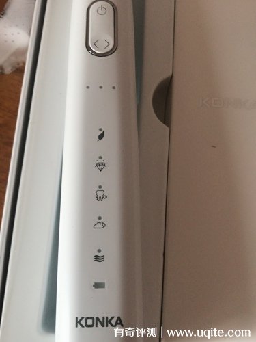 這款康佳電動牙刷包裝顏值就還挺高的,而且質(zhì)量和細節(jié)處理很不錯,整體的設(shè)計感很強,電動牙刷拿在手上很有質(zhì)感,看著就還挺有檔次的。